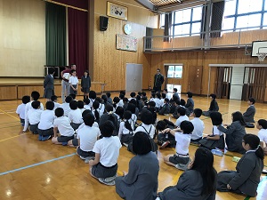 あいさつは、「大きな声・さわやかな笑顔・立ち止まって目を見てあいさつ」ができるようになろうとお話がありました。