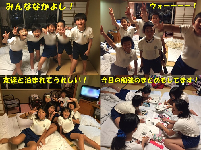 一日目も終わろうとしています。一日歩いて勉強し、疲れちゃったけど、ホテルでの夕食で元気回復。部屋に戻るとなかよしの友達との話もはずみます。