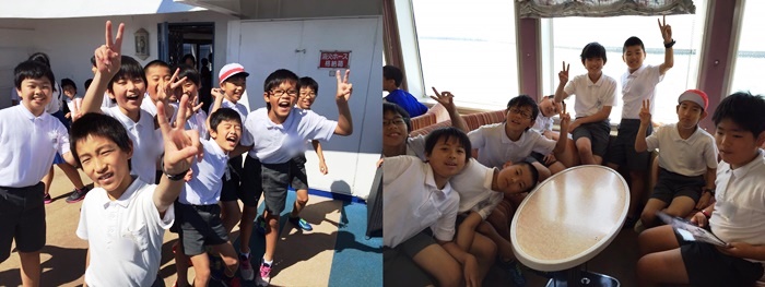 ↓島原に向かうフェリーの中です。楽しそう・・・。