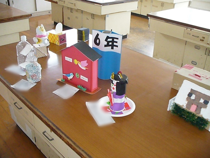 アイデアいっぱいの工作が勢ぞろいで、見学に来た子供たちも、ほかの学年の作品を見ながら「おー」とが「すごいねー」と感嘆の声を上げていました。