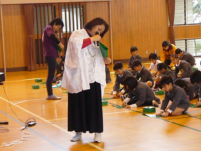 寒い体育館でしたが、みんな真剣に聞いていました。