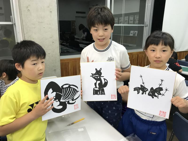 夜の活動は切り絵に変更です。真剣に彫り、短い時間でも作品が完成しました。