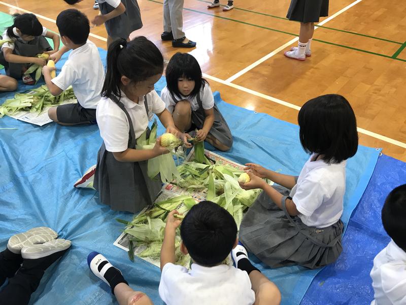 初めてトウモロコシの皮をむく体験をした子ども達も多く、難しかったようです。