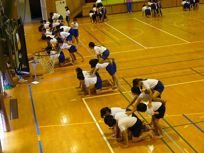 この組体操は5.6年生の最大の見せ場なので子供たちもきつい中にも一生懸命取り組んでいます。