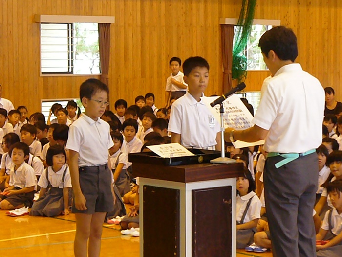 ↓夏休み中に大会などで頑張った人たちの表彰がありました。