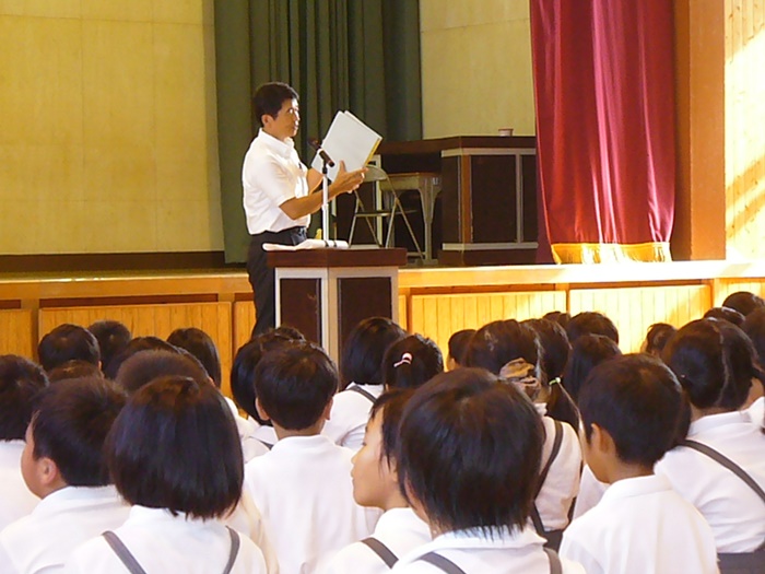 校長先生からは、1学期の終業式のときにお話しされた、「きまりをまもる」ことは「いのちをまもること」というお話がありました。
