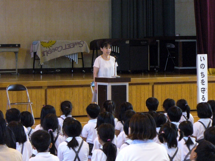 ↓最後に校長先生は、夏休みは自分で自分の命を守るんですよ、そのためにはきまりを守りましょう、とお話しされました。