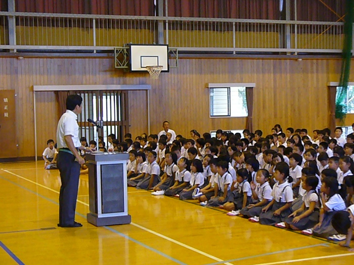まだまだ暑い体育館ですが、みんなは真剣にお話を聞いて、2学期も頑張ろうという決意を見せてくれました。