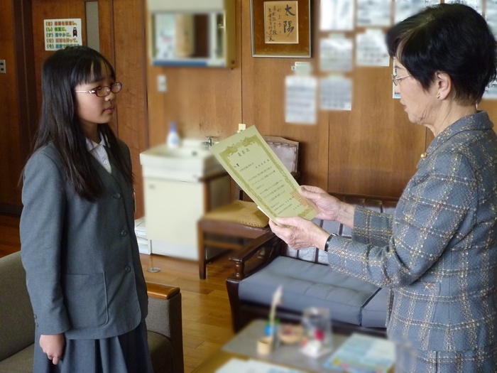 金曜日に「税に関する絵葉書コンクール」に入賞した6年生児童への表彰が行われました。