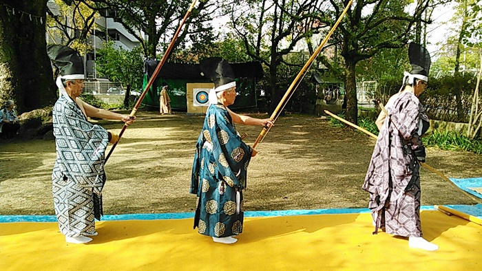 ↓弓を弾く儀式です。実際に矢を放たれた技術に子供たちもびっくりしていました。