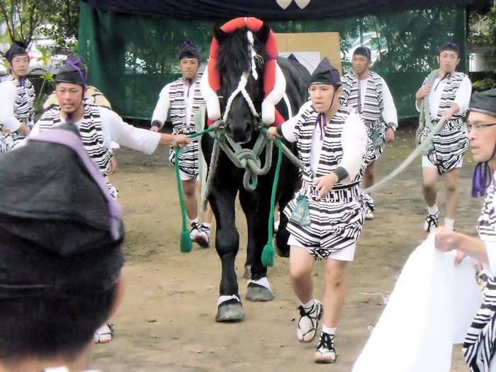 神事の後、弓を引く儀式や神馬が社殿の周りを回るなどお祭りの雰囲気を盛り上げました。