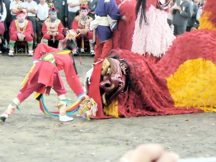 想像以上に迫力のある獅子舞でした。異国情緒あふれた独特の雰囲気の中、子どもたちも獅子舞を楽しんでいました。