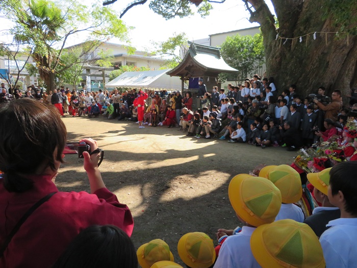 子供たちも、休み時間などにお祭りを見学に行っていました。特に、獅子舞には、代陽小の子供たちも参加しているので、興味津々で見ていました。