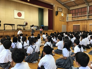 式の後には、八代市の童話発表会に、本校代表として参加する1年生の童話発表と