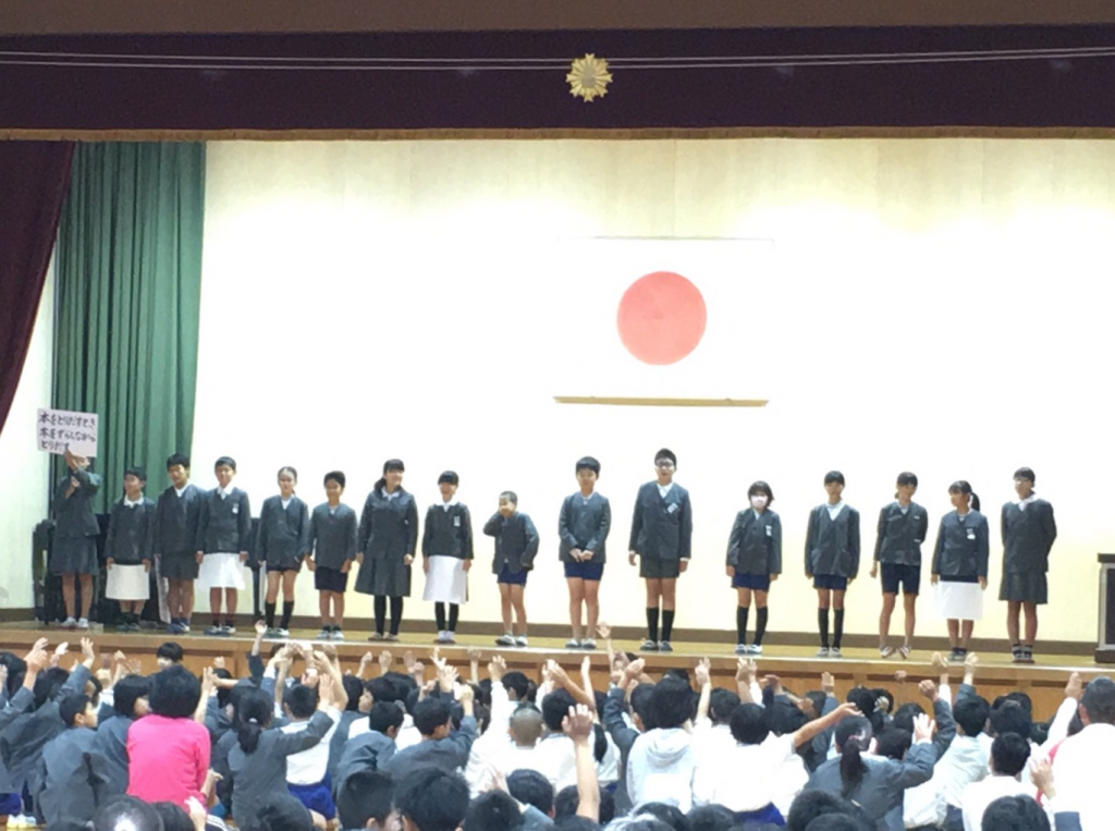 今朝のおひさま集会は、図書委員会の発表でした。