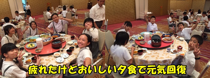 一日目も終わろうとしています。一日歩いて勉強し、疲れちゃったけど、ホテルでの夕食で元気回復。部屋に戻るとなかよしの友達との話もはずみます。