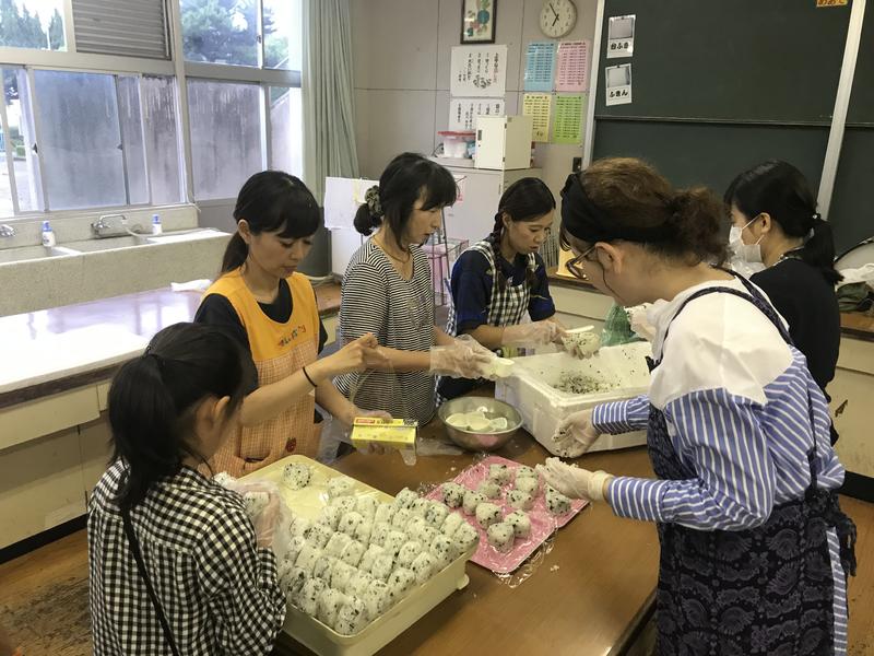 朝早くから作業後の「みんなで朝ごはん」のおにぎりの準備を行いました。