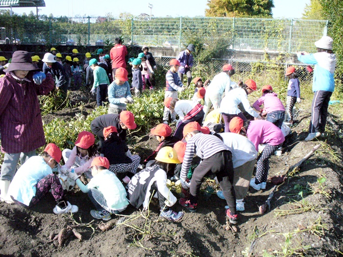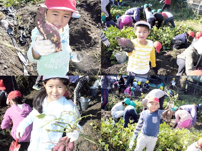 土が少し硬めで子供たちの力ではなかなか掘るのが大変でしたが、頑張ってたくさんお芋を収穫していました。