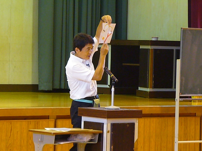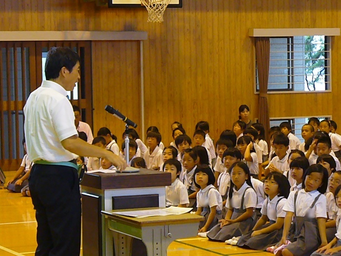 ↑校長先生は生き物を面白半分でいたずらしてはいけないという話をされました。命あるものですものね。