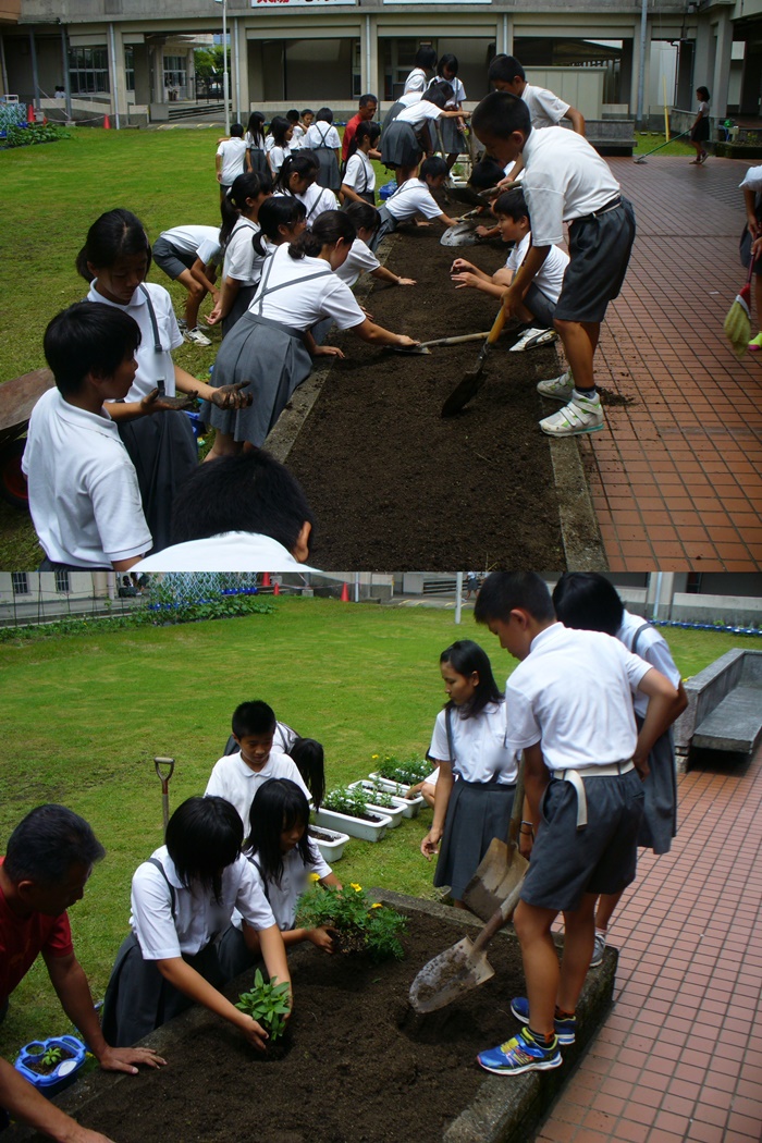 代陽小学校はたくさんの花壇があり、すべての花壇を活用するのは大変ですが、今日は六年生が頑張ってくれました。