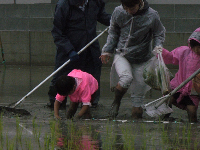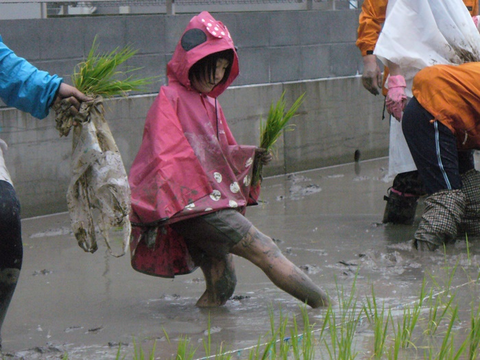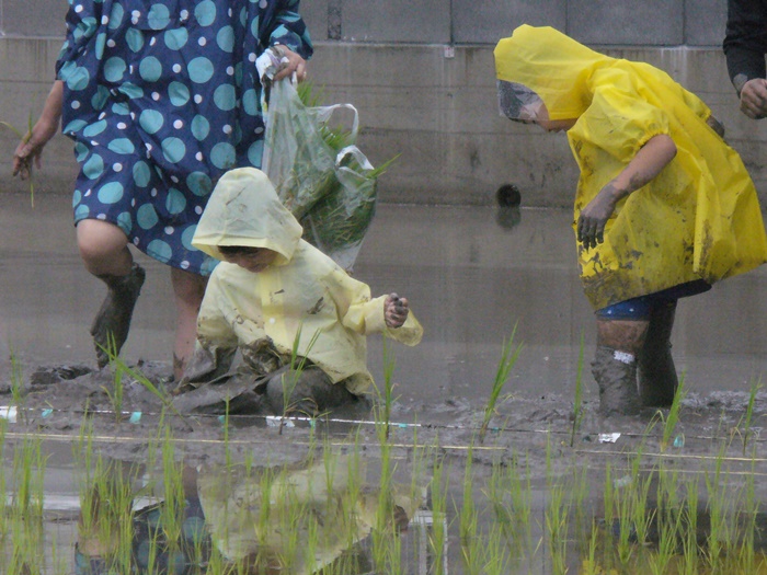 代陽小の子供たちのほとんどは田んぼに入ったのが初めてだったと思います。