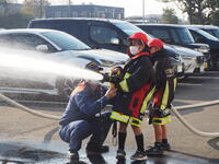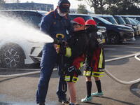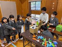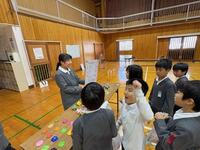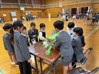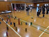 低学年と一緒に、5年生が作った輪投げやマジック・ボーリング・的当てなどで楽しく交流をしました。