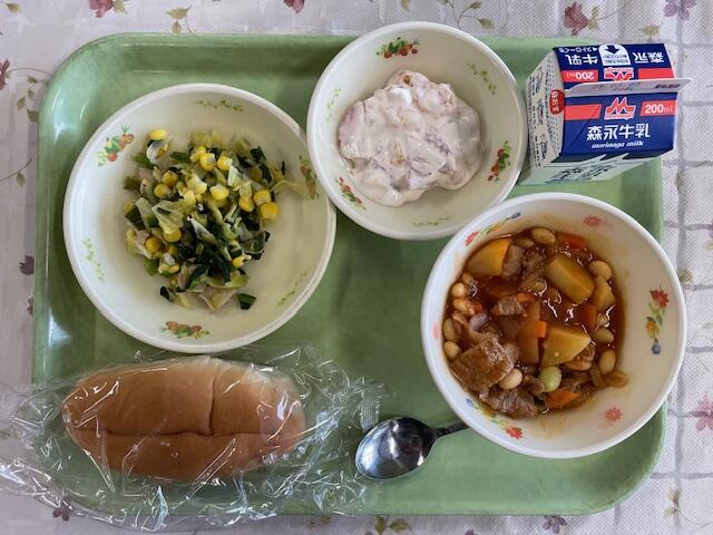 ハヤシライス(麦ごはん)、コロコロビーンズサラダ