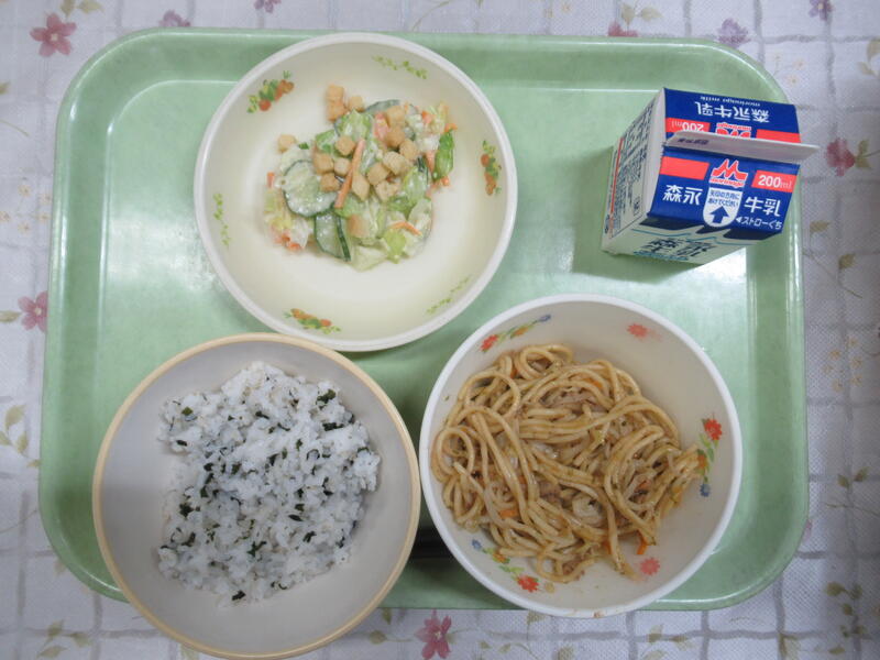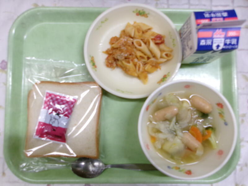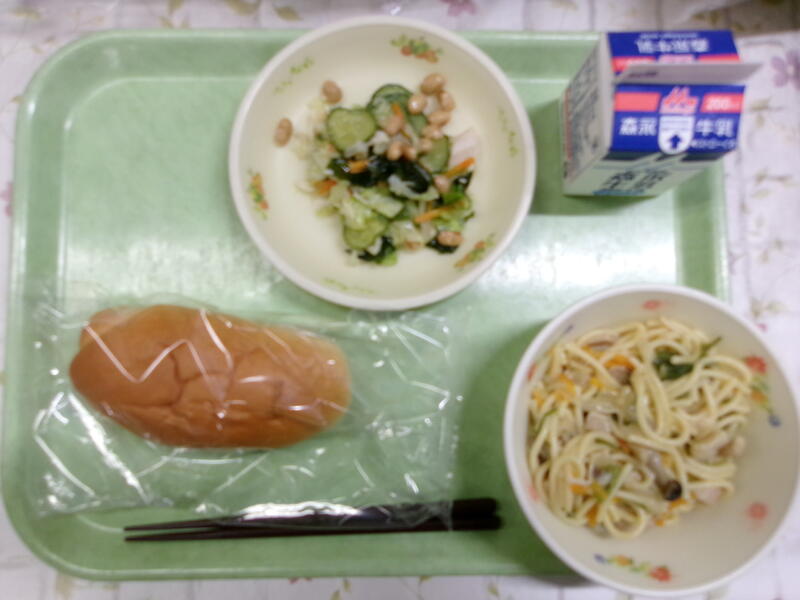 ミルクパン、きのこスパゲティ、イタリアンサラダ