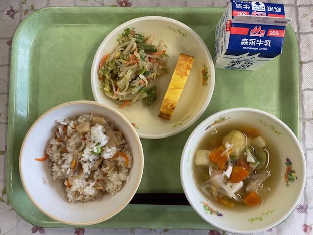 鮭わかめごはん、どさん子汁、北海道かぼちゃコロッケ、かみかみサラダ
