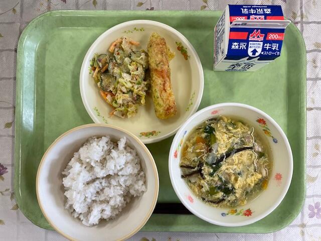 麦ごはん、たんたん風春雨スープ、きびなごサクサク揚げ(2ケ)、切干大根のサラダ