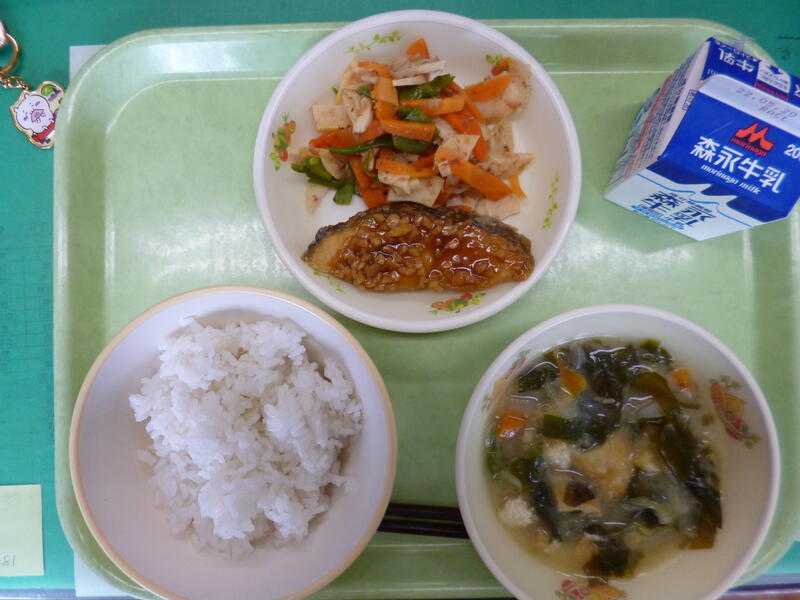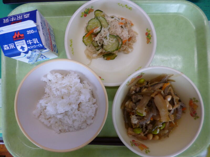 麦ごはん、牛乳、大豆の磯煮、切り干し大根の酢の物
