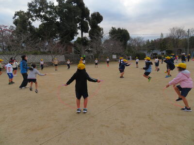 6年生は、1年生にやさしく教えながら活動してくれました。その他の学年は、それぞれ輪になってしっかりと練習できていました。「短なわ大会」が予定されていますので、少しでも記録が伸びるよう頑張ってくれたらと思います。
