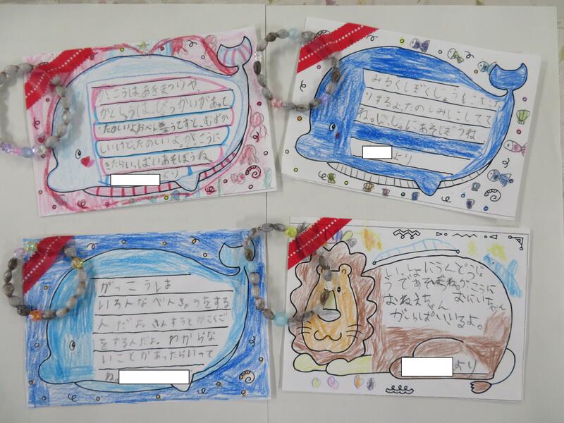「たいいくってときどきおにごっこをするときがあるよ。きゅうしょくもおいしいよ。いろいろなせんせいがいるよ。ずこうはたのしいよ。いろんなおべんきょうがあるよ。学校にきたらいっしょにあそぼうね。」このように、1年生からのメッセージは、どれも可愛く温かいものでした。