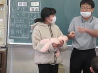 産まれたばかりの赤ちゃんとほぼ同じ重さの人形を抱いて、命の誕生について実感することができた5年生でした。