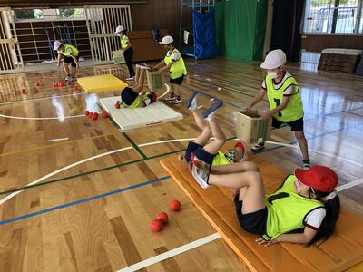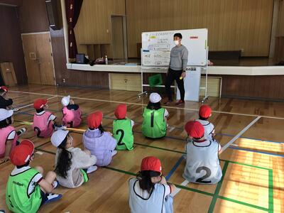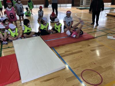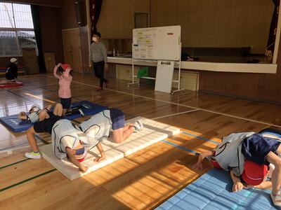 2年生は体育で「マットランドで遊びまくろう」という学習に取り組んでいます。本来は、学習の様子を郡内の先生方に公開する研究授業を行うはずでした。しかし、コロナ禍を受けそれが中止になったので、昨日(2月3日)代表の先生がビデオと写真撮影のため授業を参観されました。