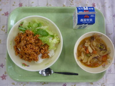 タコライス(麦ごはん、タコライスの具)、ブラウンスープ、牛乳