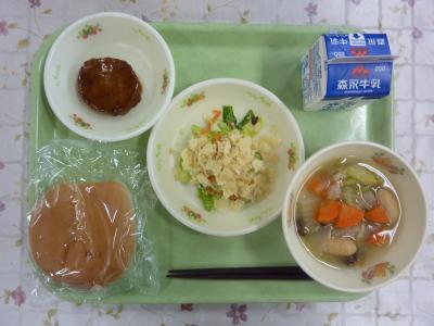 麦ごはん、豚汁、元気サラダ、ちくわのマヨネーズ焼き、牛乳