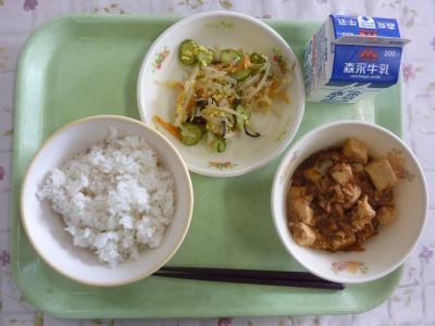 麦ごはん、麻婆豆腐、中華サラダ、牛乳