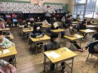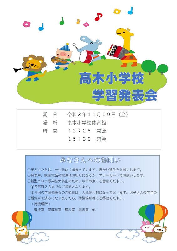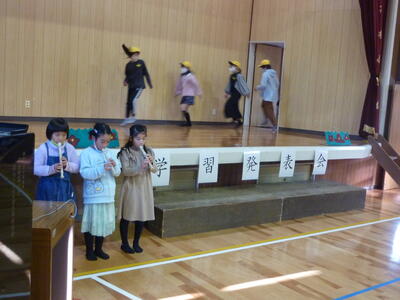 今日(11月19日)、学習発表会を行いました。コロナ禍を受け、発表する学年とその保護者だけが体育館で発表と参観をし、その他の学年は教室で、その他の保護者の方々は控室でライブ視聴する形で行いました。