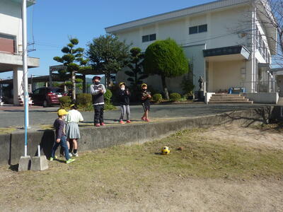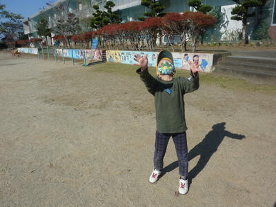 子どもたちは大喜びで遊んでいました。とても高く飛ぶ竹とんぼに「先生、高く飛んだ!」と歓声をあげていました。老人会の方々と一緒に遊ぶことはできませんでしたが、子どもたちを思っていただくお気持ちは子どもたちに伝わったようです。