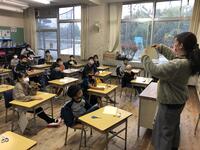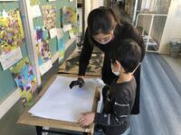 2年生は今日(11月22日)から紙版画の学習に入りました。最初の時間は、低学年担任の経験が豊富な教頭先生がメインで指導にあたりました。