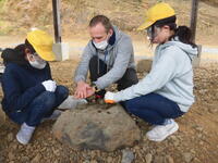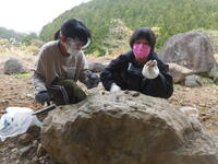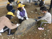 まずは、化石広場に行き化石採取を体験しました。しっかりと説明を聞いた後、思い思いに採取に取り組みました。見事、全員が貝や葉っぱなどの化石を採取することができました。