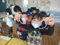 そして出来上がりです。上手にできたブレスレットを手に大喜びの1年生でした。