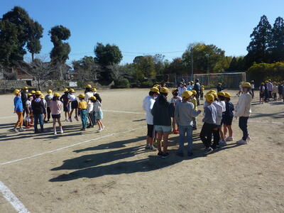その後、家庭科室からの出火を想定して運動場に避難しました。みんな真剣な表情で素早く行動し、非難することができていました。