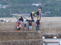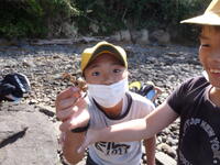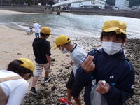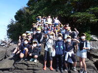 午後からは、湯の児温近くの島に移動して磯遊びや魚釣りを楽しみました。かにややどかりなどいろんな生き物を見つけることができました。魚釣りの方は潮が引いていてなかなかうまくいかなかったようです。