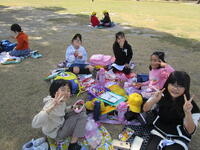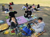 しっかりと学習した後はお楽しみのお弁当です。天気が良かったので芝生の上でとてもうれしそうです。