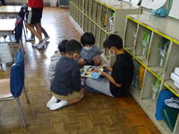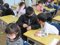 待ち時間は、遊び相手にもなってくれました。紙芝居や折り紙、絵本や塗り絵とやさしく声をかけながら一緒に遊んでくれました。さすがは来年度の6年生です。