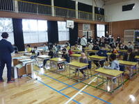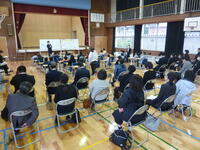 今日(11月10日)2年生は人権学習の公開授業を行いました。30名以上の参加者があるため、感染予防の観点から体育館で授業を行いました。