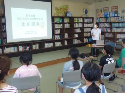 6年生の今日(7月14日)の社会科は出前授業でした。熊本県の「熊本地震被災文化財復旧情報発信」という事業を活用して、県教育庁文化課から3名の講師においでいただき、授業を受けることができました。