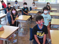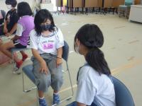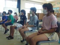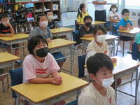 こちらは、4年生と3年生の様子です。どちらも真剣な表情で話を聞くことができています。
